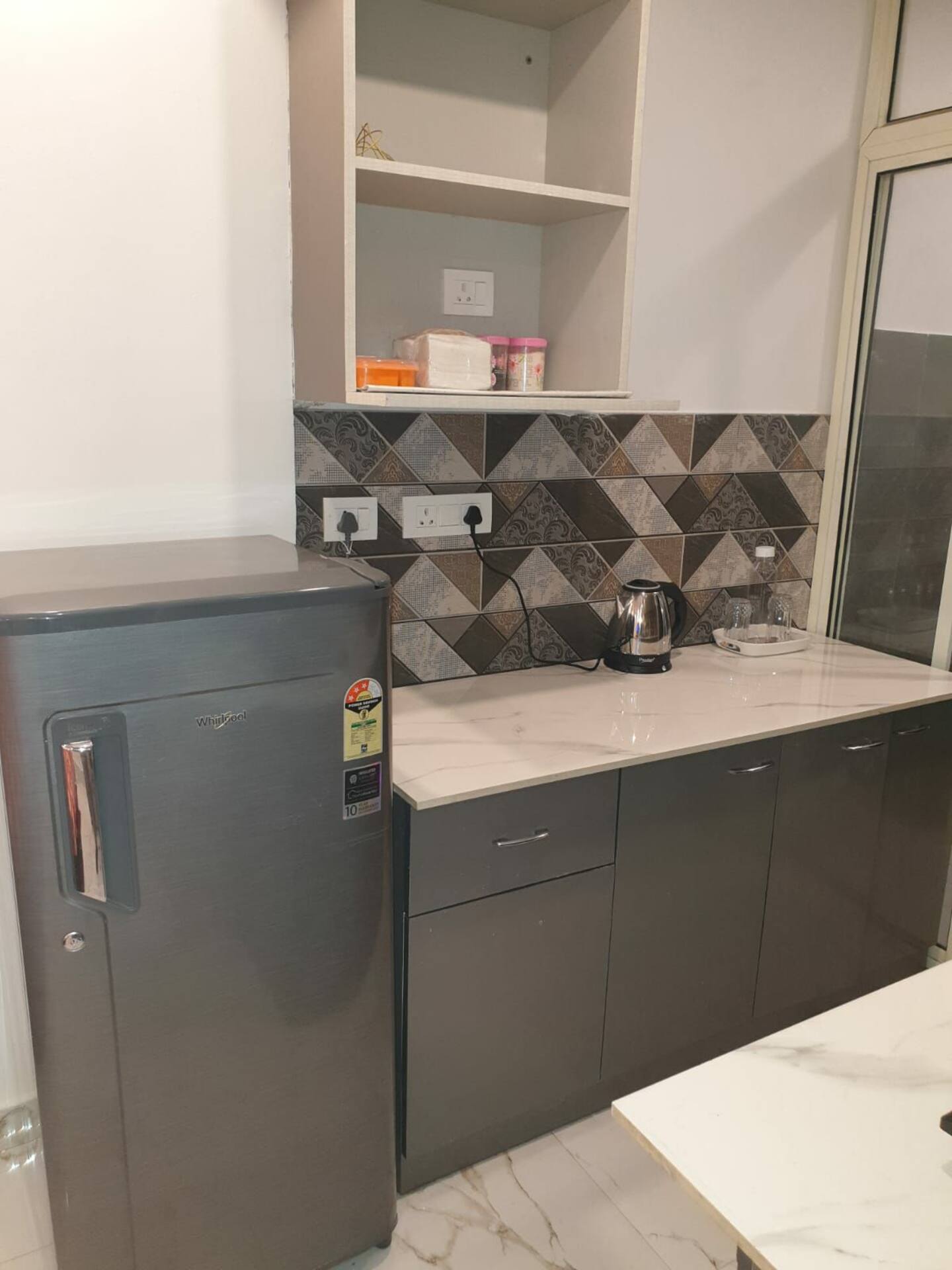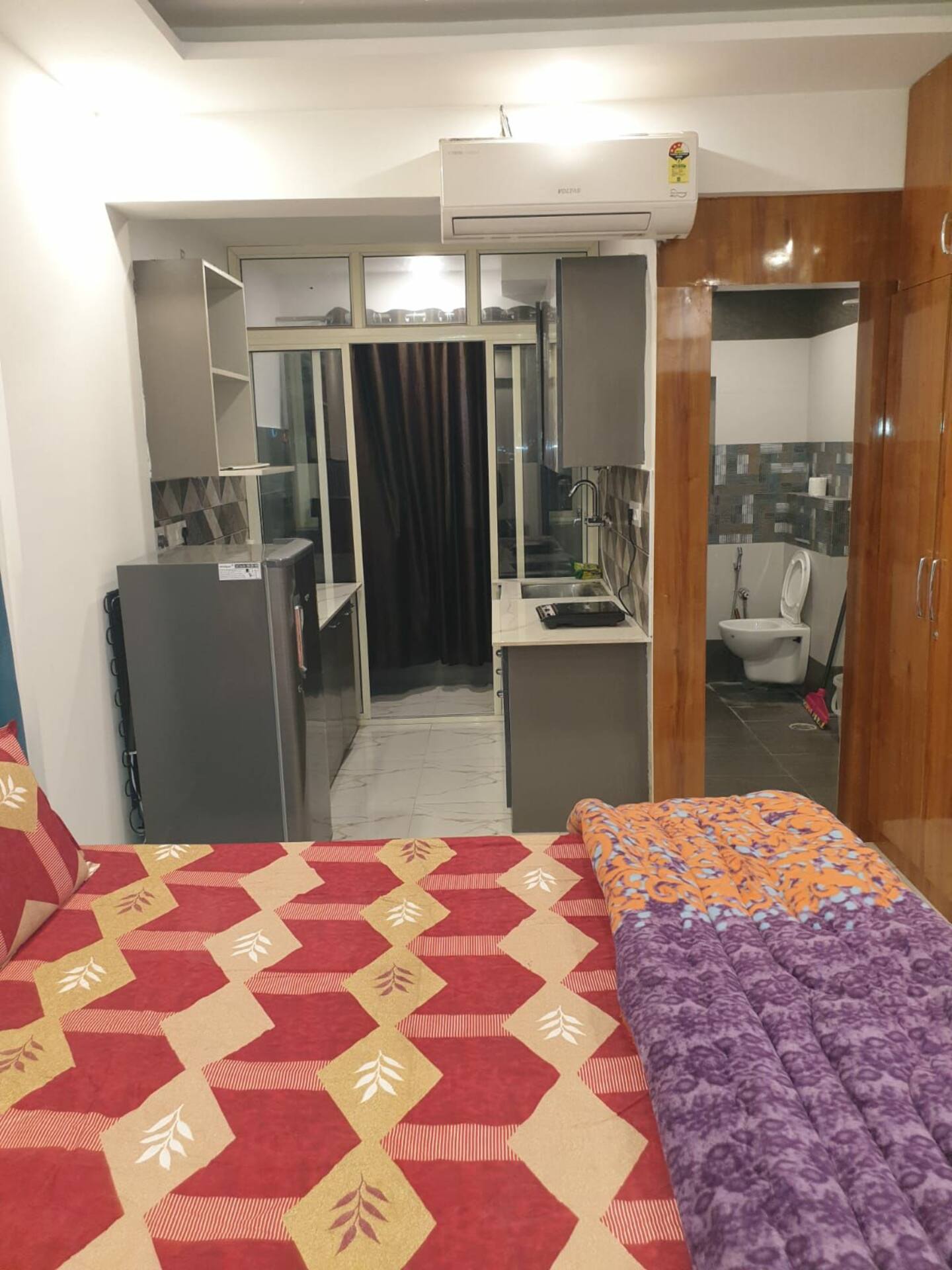 This beautiful studio apartment creates a sense of beauty comfort and state of the art furniture. The design is quite unique and inviting. Situated on the 9th floor off the building this apartment has a picturesque view from the window of the beautiful well laid out roads and greenery around the apartment complex. This is immediately frequented by young couples travelers and business people.